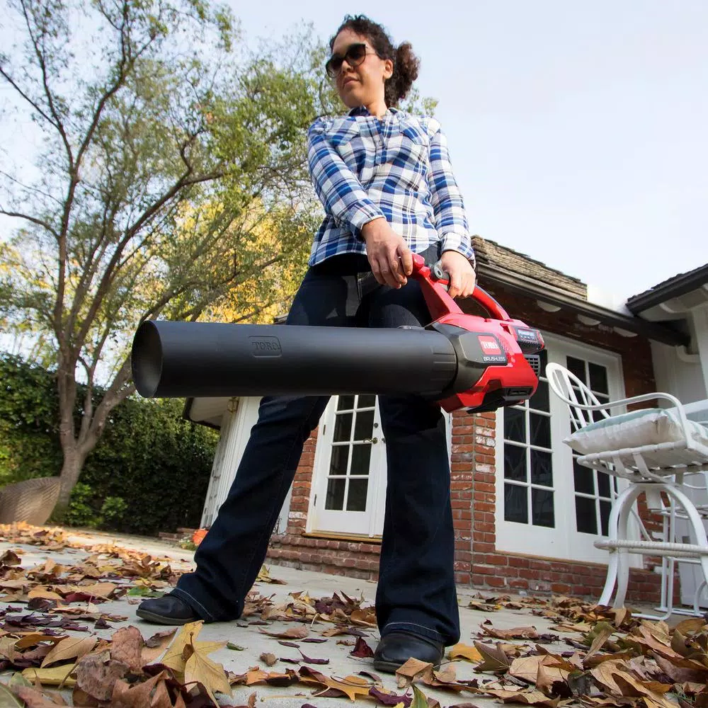 Take charge of yard debris with Toro’s PowerPlex BLDC Blower. This cordless, 40-Volt MAX blower has the power to move debris and the features needed to easily control it for many different tasks. Its thoughtful design puts the variable speed trigger, speed lock, turbo boost close together for one-handed operation on a very well-balanced tool. To expand the utility and save its customers time, Toro included blower collars that allow for the easy attachment of the Toro gutter cleaning kit and a path-widening, oscillating nozzle kit (attachment collar included, attachments sold separately). With 90-Watt hours, the T90 battery provides up to 60 minutes of run time and this battery charges in approximately 60 minutes in the quick charger. Battery and charger not included. No other cordless blower offers this combination of versatility and power. Take charge of the yard with Toro PowerPlex tools.