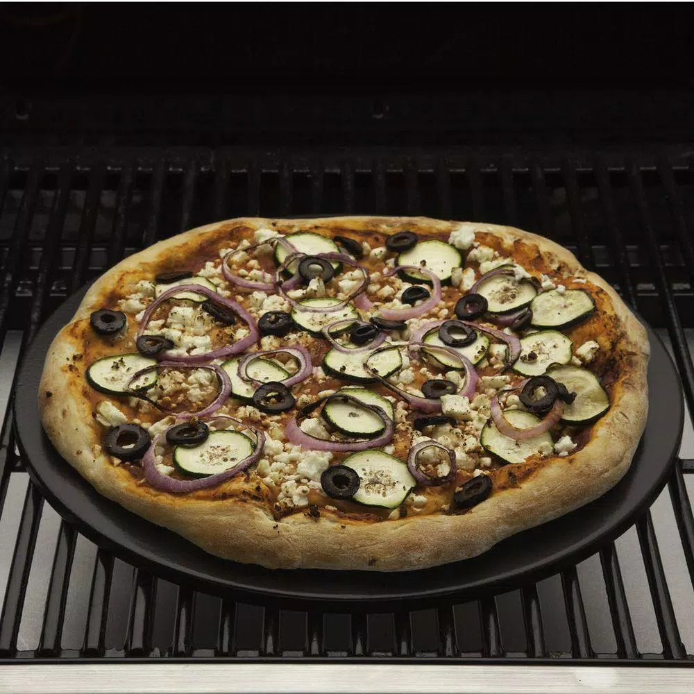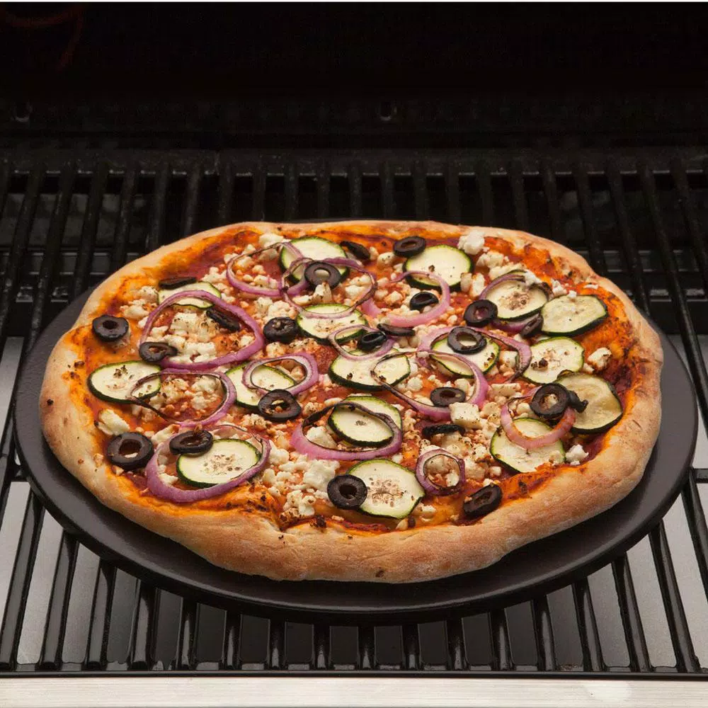 - 13 in. Dia 3/8 in. thick pizza stone can be used on any grill
