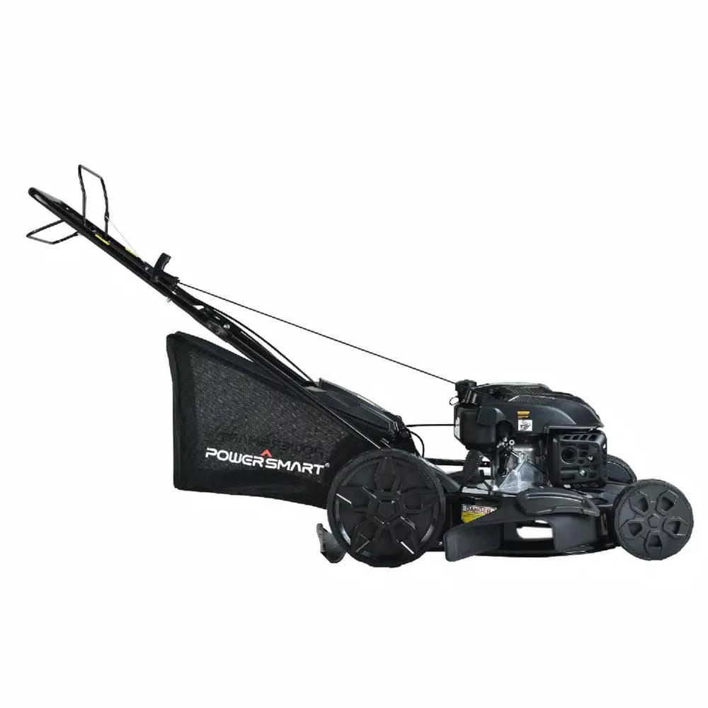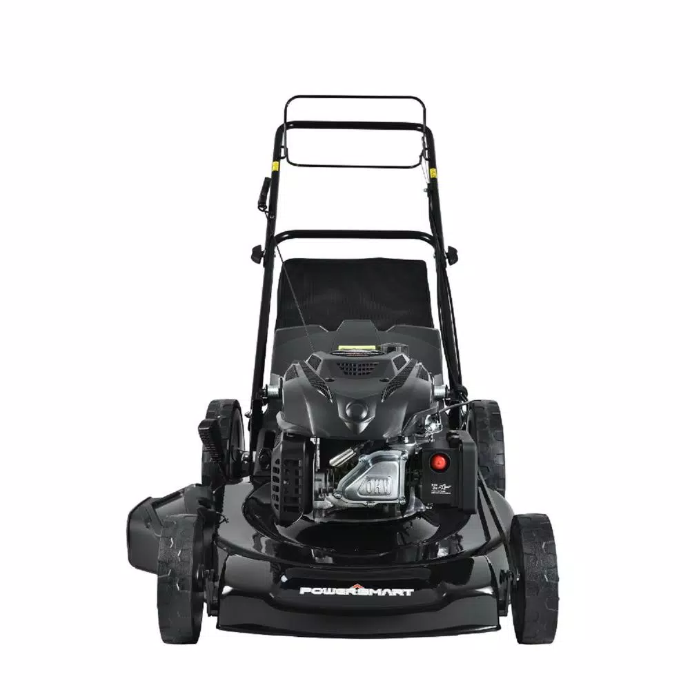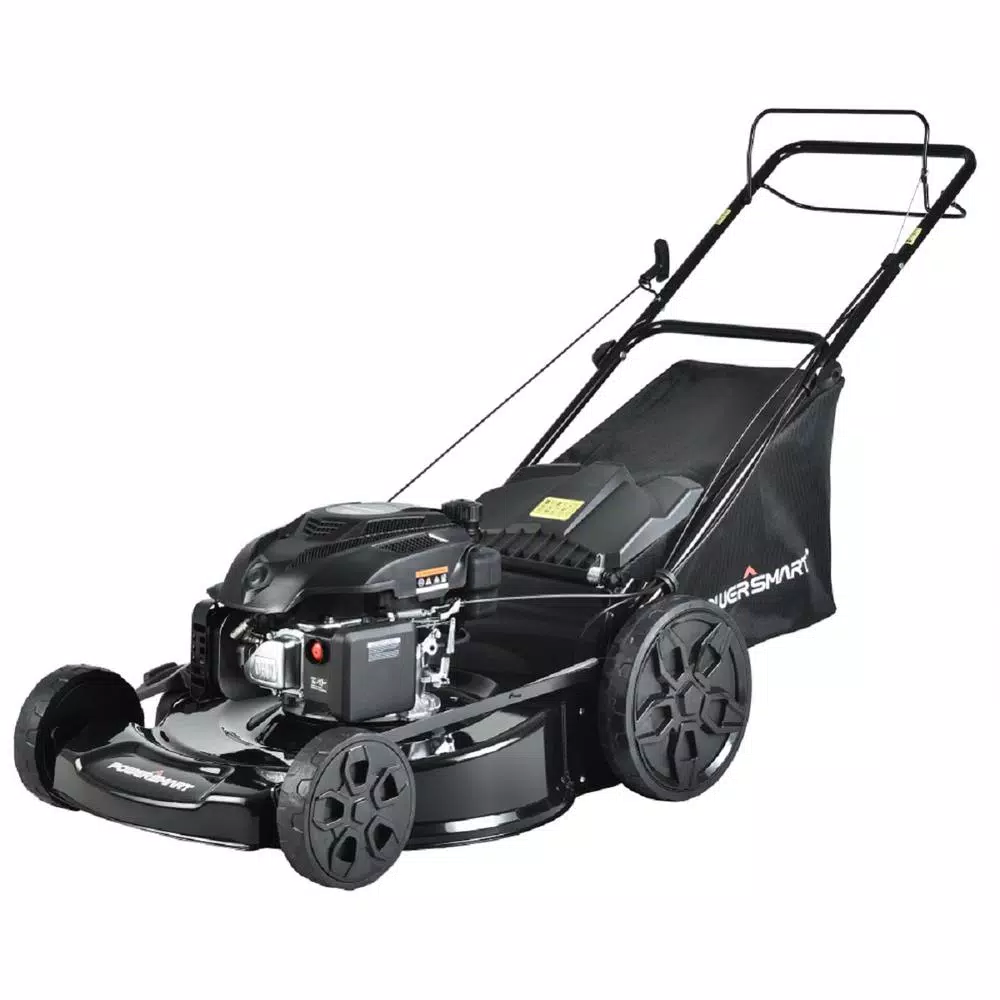 Ideal for the smaller yard, the compact, 200 cc self-propelled gas-powered Power Smart PSM2022 push lawn mower is easy to operate in tight spaces and features 3 cutting systems including side discharge option and mulching capability plus a collection rear bag. Offering a smart, powerful, highly efficient and lightweight design and the PSM2022 features a rear wheel drive mode that makes it easier to maneuver on uneven and rough. The deep dome deck design accompanied with the sharp and solid blade makes for better mulching. Easy to operate and weighing just 93 lbs., the mower also features a durable steel deck that cuts a 22 in. swath and adjustable height from 1.2 to 3.5 in. to meet your varying needs