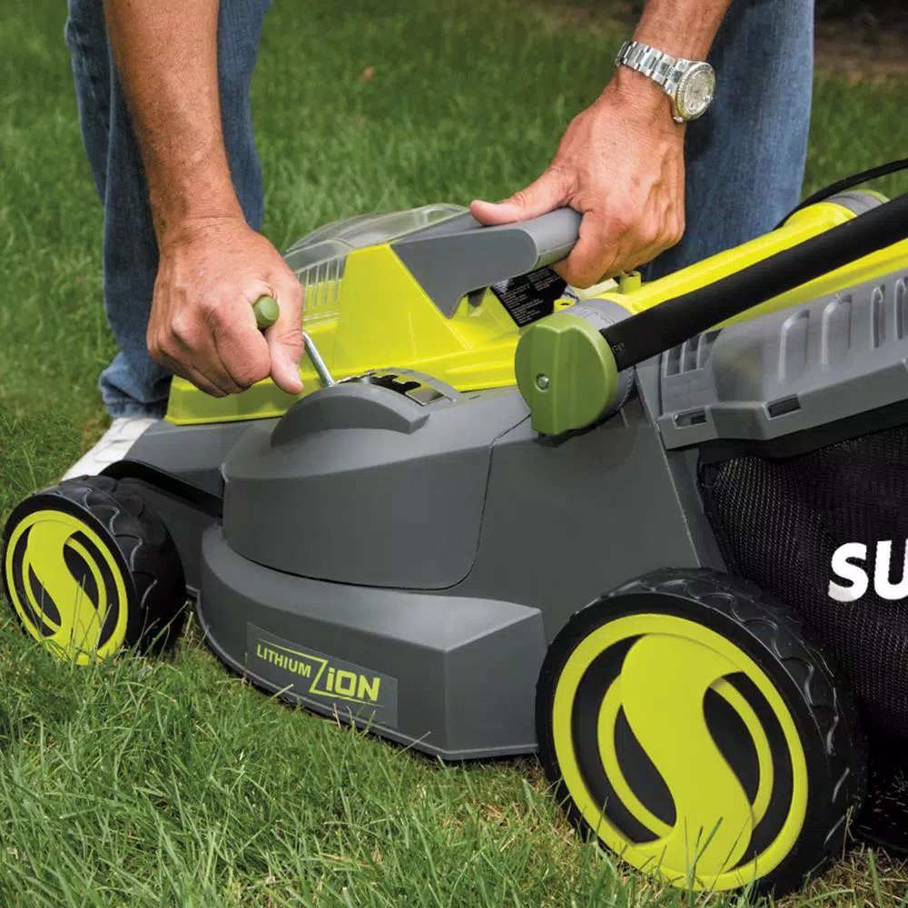 Meet the newest addition to the iON tool series – the Sun Joe iON16LM cordless lawn mower. This cordless dynamo is also engineered with a powerful brushless motor for increased battery efficiency, optimal motor performance and extended motor life (up to 2,000 hours) to keep your iON mowing strong season after season. The iON16LM starts instantly with a simple push of a button and its ergonomic handle maximizes user comfort during use. It features rugged front and rear all-terrain wheels that make it easy to maneuver in tight spaces. The 9.25 Gal. grass bag conveniently detaches to dispose of grass clippings. The iON16LM is backed by a full two-year warranty, is ETL approved and Energy Star certified. Get equipped this spring with the Sun Joe iON16LM – the easy, convenient and cord-free way to care for your lawn.