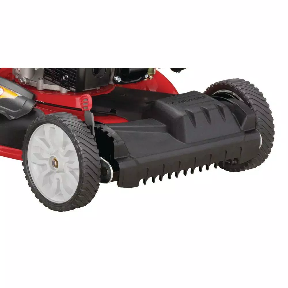 Eliminate oil changes on the Troy-Bilt TB230 self-propelled mower with the innovative Check, Don’t Change system on the Troy-Bilt engine. Simply check the oil each time and top off as needed, reducing maintenance time and having to dispose of old oil. Variable speed front wheel drive improves control and allows for faster turning while mowing. The 11 in. high rear wheels provide improved traction and maneuverability on hills and over rough spots in the lawn. With rear bag, mulch kit and side discharge options included, you have a choice for disposing of grass clippings. Dual-lever height adjusters are conveniently located to quickly adjust the cutting height and the TriAction cutting system uses a rake guard, symmetrical deck and specialized blade to deliver a clean, even cut every time. You can depend on Troy-Bilt to keep yardwork from feeling like a chore, and we won’t let you down.