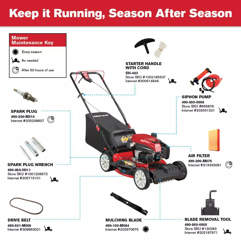 - Use fuel stabilizers to maintain your engine and increase the longevity of your mower (not included)