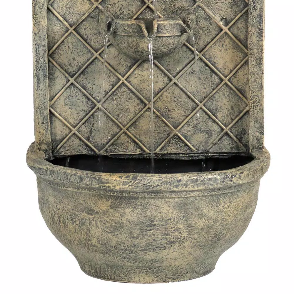 This outdoor solar wall fountain is perfect for any patio or garden wall. Water flows from the faucet down to the second level where it splits into 3 streams and flows into the basin below. Water recirculates in the basin using the solar-powered pump. The fountain features a polystone and fiberglass construction, giving it a stone-like look. Polystone is made from polyurethane resin mixed with a powdered stone additive which provides the lightness and durability of resin mixed with the high-end look of stone. No more unsightly extension cords running across the yard and hogging the outdoor plugins.