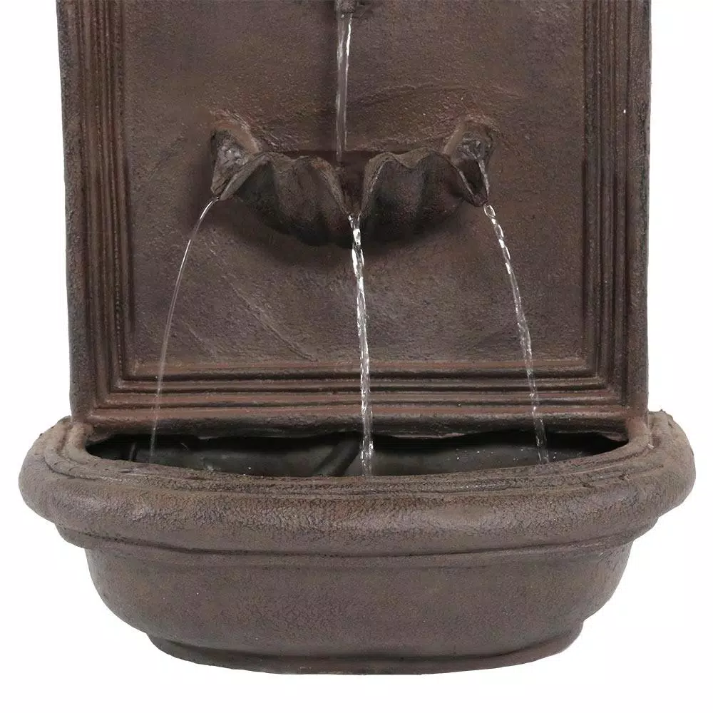 Add sea-themed charm to any patio or garden walls with this solar powered outdoor wall water fountain. Water flows from the faucet into the level below where it splits into 3 streams and flows into the basin below. The pump is plugged into a solar panel that runs the fountain via the sun. The fountain features a polystone and fiberglass construction, giving it a stone-like look. Polystone is made from polyurethane resin mixed with a powdered stone additive which provides the lightness and durability of resin mixed with the high-end look of stone. No more unsightly extension cords running across the yard and hogging the outdoor plugins.