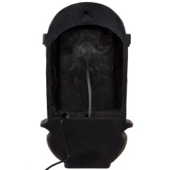 Bring the look of Mexico to the patio, in the garden or in the yard with this colonial style outdoor electric wall water fountain. Simple installation and hook up, just hang, plugin and enjoy. The brown/rust iron finish is a nice fit for most natural color schemes.