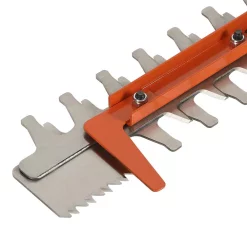This Black and Decker 20 in. Dual-Action Hedge Trimmer features 20 in. dual-action pre-hardened steel blades to cut quickly and cleanly through thick hedges and shrubs along with a 2 in sawblade feature for cutting branches. The trimmer has rust resistant steel blades to stay sharp longer. The 3-sided cushioned handle provides a large gripping area for comfort and control.