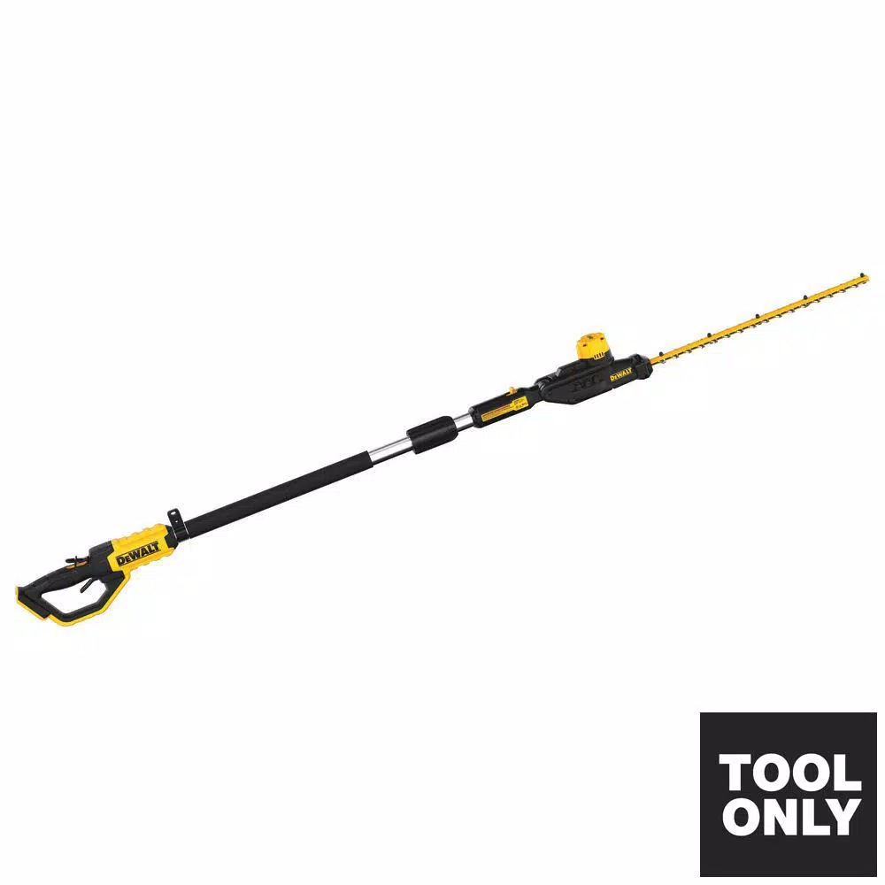 This Pole Hedge Trimmer is designed to cut through a variety of landscape overgrowth. The pole hedge trimmer has a high output motor and 22 in. hardened steel laser-cut blades engineered for clean, fast cuts on branches up to 1 in. thick. The 7-position, 180° articulating head allows you to customize cutting angles for hedges of any shape and size. When fully extended, the pole hedge trimmer can be extended up to a 12 ft. max reach.