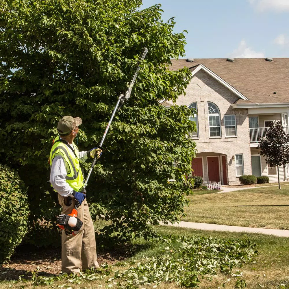- Offset articulating gear case for easy cutting of hedge tops or other hard-to-reach areas