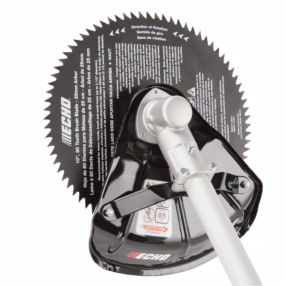 - 10 in. 80-tooth blade to cut through thick brush and small trees