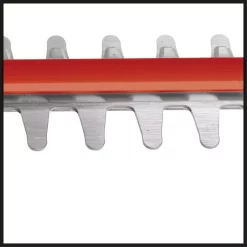 The GE-CH 1846 Li cordless hedge trimmer is an efficient tool which thanks to its low weight and handy size provides good service for the trimming of hedges, shrubs, and bushes on large grounds and allotments where there is no connection to the electric power grid. For a long service life, the gearing is made of metal, for clean cutting results the blades are made of laser-cut and diamond-ground steel. The integrated 2-hand safety switch brings the cutters to a standstill in less than 1 second when a switch is released. The cutters are protected by an aluminum cover. The shock guard has a hole for wall mounting and enables this cordless hedge trimmer to be stored away in an instant in minimum space. The GE-CH 1846 Li comes with a sturdy cutter guard for safe and user-friendly transportation or storage.