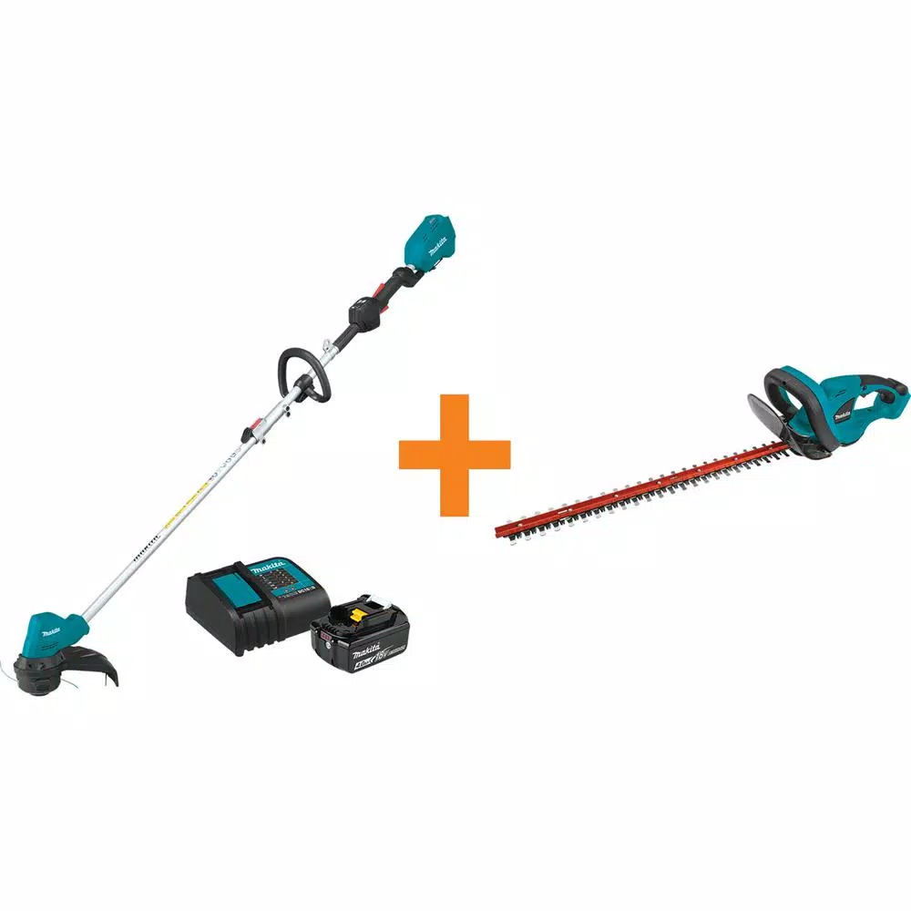 With zero emissions, lower noise and considerably less maintenance, the 18-Volt LXT Brushless Cordless String Trimmer (model XRU12SM1) is a welcome solution for landscapers. The string trimmer is ideal for precision trimming and edging. It features an efficient Makita BL Brushless Motor for longer run time, increased power and speed and longer tool life. The kit includes an efficient charger and an 18-Volt LXT 4.0 Ah battery which reaches a full charge in only 40-minutes the fastest charge-time in the category for less downtime and increased productivity. The efficient brushless motor delivers up to 6,000 RPM for faster cutting. The XRU12SM1 is equipped with Automatic Torque Drive Technology, which automatically shifts from 4,000-6,000 RPM depending on the density of the application. There are 3-speed options (4,000/5,000/6,000 RPM), allowing users to match the speed to the application. The easy-loading bump-and-feed trimmer head is compatible with 0.08 in. or 0.095 in. line and offers reverse rotation allowing users to quickly clear the head of entangled grass and weeds. The XRU12SM1 features Makita Extreme Protection Technology (XPT). XPT is a protective seal inside the tool and is engineered for improved operation in harsh conditions by channeling water and dust from key internal components. This Promotion also comes with a bonus 18V LXT Lithium-Ion Cordless 22 in. Hedge Trimmer (Tool Only).