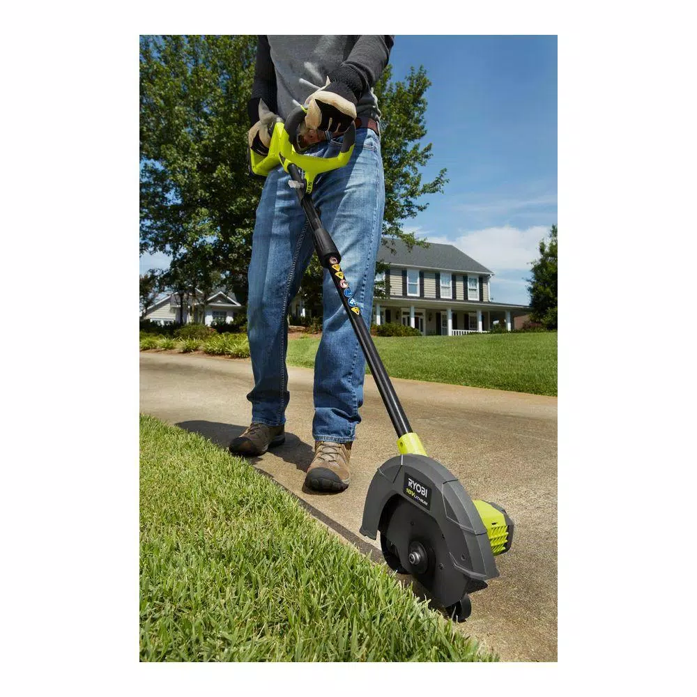 Nothing beats the RYOBI ONE+ system for the perfect union of convenience and versatility. This 18-Volt Edger features a lithium-ion battery that works with all RYOBI ONE+ tools. That’s over 125 products running off the same battery. This ONE+ edger is ideal for anyone who’s tired of dealing with gas and cords. With a lightweight design and instant starting, this edger also features a 9 in. dual serrated blade with a 4-position adjustable depth control. The 18-Volt Lithium-ion battery recharges in just 1-hour and provides your ONE+ tools with fade-free performance for the entire life of the charge. The RYOBI ONE+ 18-Volt Edger is backed by a 1-year warranty.