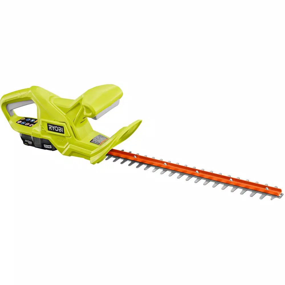 The RYOBI 18 in. 18-Volt Cordless Hedge Trimmer is lightweight and compact at only 4.5 lbs. This hedge clipper has a 5/8 in. cut capacity with dual action blades for reduced vibration. The 18-Volt lithium-ion battery and tool are part of the ONE+ system. All backed by a 3-year warranty.