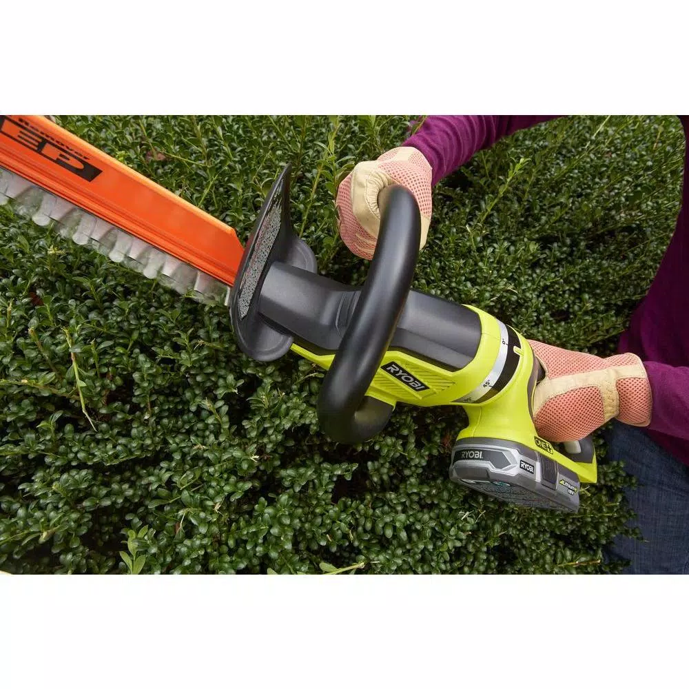 The RYOBI 22 in. 18-Volt Cordless Hedge Trimmer is ideal for any hedge maintenance around the house. The ONE+ Hedge Trimmer redefines the 18-Volt category by delivering the power and performance you’d expect from higher voltage lines, while its lightweight, compact design makes it comfortable and easy for anyone to operate. With the upgraded 22 in. dual-action blades and a 3/4 in. cut capacity, this hedge trimmer can handle even the toughest hedges. Featuring a wrap-around front handle and rotating rear handle, this unit provides precision cutting at any angle. This trimmer also features a Hedge Sweep that clears clippings and debris while you trim. Back by a 1-year warranty.