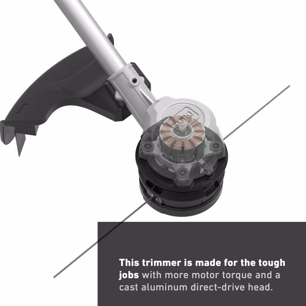 - Expect superior durability and performance this trimmer is made for the tough jobs with more motor torque and a cast aluminum direct-drive head