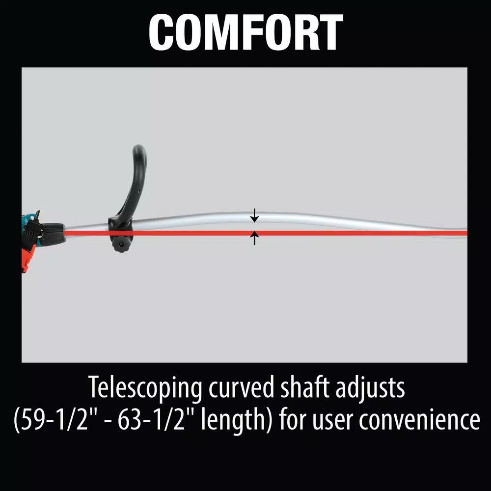- Telescoping curved shaft adjusts (59-1/2 in. – 63-1/2 in. L) for convenient operation in tight places